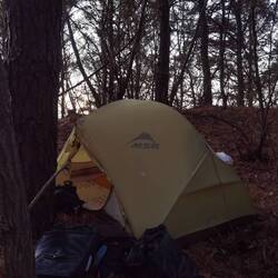 Heute wollen wir, wenn möglich, zelten, weshalb wir uns um 16:30 Uhr schon auf die Suche nach einem geeigneten Zeltplatz machen, weil eine Stunde später schon die Sonne untergeht. Am Ende eines etwas ruhigeren Waldweges, der zu ein paar alten Grabhügeln führt, finden wir eine Stelle, bauen das Zelt auf, kochen Nudeln und vermischen sie mit den überscharfen Resten von gestern, wodurch sie nur noch scharf sind.