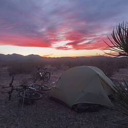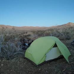 Kurz vor Sonnenuntergang bauen wir unser Zelt auf, von wo aus wir noch immer RVs sehen können, allerdings nun in einiger Entfernung. Die Landschaft hier erinnert uns ein wenig an die Mongolei und auch die in dee Wüste verteilten RVs haben eine gewissen Ähnlichkeit mit den Yurten der Mongolen.Read more