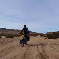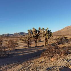 Nach der Stadt fahren wir hinaus in die Mojave Wüste und kehren Route 66 vorerst den Rücken zu. Auf festgefahrenen Wüstenstraßen entfernen wir uns immer weiter von der Zivilisation und kommen an einigen unweit der Straße geparkten RVs vorbei. Neben den meisten stehen Quads und Motorcross-Maschinen, mit denen deren Besitzee durch die Hügel fahren. Immer wieder kommen wir an RVs und Quads vorbei, während wir tiefer in die Wüste hinein fahren.