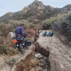 Da dieser "Weg" allerdings der einzige direkte Weg (ohne 100 km zusätzlich) ist, entscheiden wir uns für folgenden Plan: Die Fahrräder und Taschen einzeln hochtragen. Eine Runde laufen wir gemeinsam mit den Rucksäcken und ein paar Taschen, dann trägt Lukas die nun leeren Räder und ich die restlichen Taschen. Nur knapp 3 Stunden später haben wir es dann auch schon geschafft und sitzen ziemlich fertig oben auf dem Kamm.