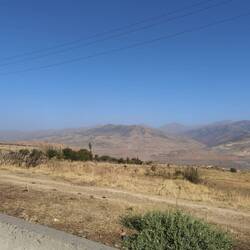 Kurz darauf biegen wir von der Straße ab und folgen dem Weg, der uns auf Komoot angezeigt wird. Der Weg wird immer schmaler, weshalb wir sicherheitshalber eine Frau fragen die uns etwas misstrauisch anschaut. Sie bestätigt uns, dass der Weg der richtige ist. Also folgen wir ihm weiter und kommen durch fast vegetationslose Landschaften. Die Berge um uns herum sehen mit ihren Gesteinsschichten sehr interessant aus. Wir fahren immer weiter und fahren schließlich auch durch ein offenes Tor durch, das mit Stacheldraht geschmückt ist.
