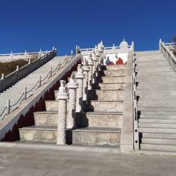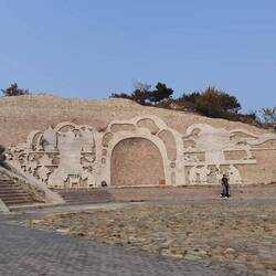 Schon recht früh kommen wir in Huade an und besichtigen noch die etwas brüchige Nachbildung der Chinesischen Mauer. Nicht nur diese ist nachgebildet und baufällig, sondern auch die Felsen, die um sie herum platziert sind. Sie bestehen nämlich aus einem Drahtgestell und einer darüber verteilten Schicht Beton, wobei bei einigen an vielen Stellen das Drahtgestell heraus guckt.
