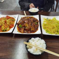 Weil es draußen unaufhörlich weiter regnet und all unsere Sachen nass sind, beschließen wir auf die typisch chinesische Art unser Essen ausnahmsweise mit dem E-Scooter anliefern zu lassen. Die Hotelbesitzerin hilft uns bei der Bestellung. Kurz danach klopft es an unserer Tür und das Essen ist schon da.Read more