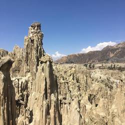 My last day in La Paz I went to the Valle de la luna. An area with weird rock formations like on the moon. It's fascinating to see something like this still being in the city. It's a bit to the outskirts but there are still residential areas around. To get there I took a local bus. It's a crazy system with tons of minibuses in La Paz just driving around everywhere and stopping wherever people wanna get on or off. I was fascinated that I found my bus and made it there and back without any confusion. I had read "look out for a minibus with a yellow sign with black letters that has a sign in the window saying 'Mallasa' around the area of Plaza San Francisco" and that was all the description I needed to find my bus within minutes.