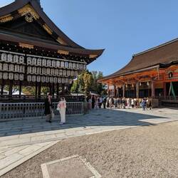 Arrivée à Yasaka Jinja. L'endroit est impressionnant et immense. EtLes mer