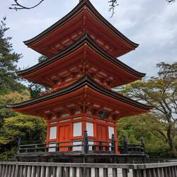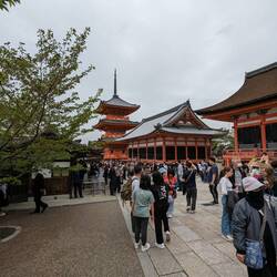 Continuons la visite de Kyoto avec l'incontournable Kiyomizudera, littéralement "temple de l'eau pure" fondé en 778 et dont les bâtiments actuels remontent à 1633. Il possède une monumentalLes mer
