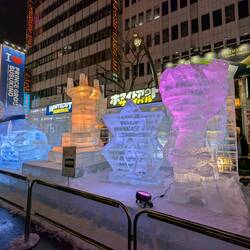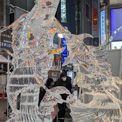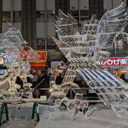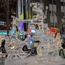 Visite du troisième site de ce festival de neige à Odori. Il y a principalement des statues en neige avec du spectacle.