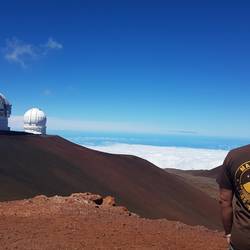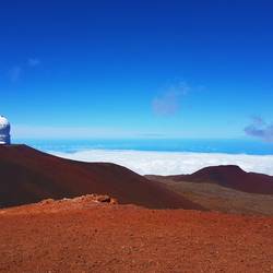 Der Vulkan Mauna Kea ist mit etwa 4205 m der höchste Berg auf Hawaii. Er wird auch als höchster Berg der Erde angesehen, wenn sich dabei nicht auf die Meeresoberfläche bezogen wird, sondern auf den Fuß des Berges, welcher sich weit unter der Meeresoberfläche befindet. Diesen Vulkan galt es heute zu besteigen. Auf dem Mauna Kea befindet sich das Mauna-Kea-Observatorium, eine Gruppe internationaler Observatorien, die zusammen die größte Sternwarte der Welt bilden. Darunter befindet sich unter anderem das Keck-Observatorium mit seinen beiden 10-m-Spiegeln, die zu den derzeit leistungsfähigsten Teleskopen weltweit gehören. Glücklicherweise muss man den Berg nicht komplett besteigen, sondern kann bis zu dem Observatorium fahren. Von dort aus sind es nur noch wenige Höhenmeter bis zum tatsächlichen Gipfel. Jedoch braucht man ein Fahrzeug mit Allradantrieb um den Gipfel zu erreichen, denn die Strecke ist teilweise unbefestigt und sehr steil. Auf Big Island gibt es nur eine Autovermietung die es offiziell erlaubt mit deren Fahrzeugen bis auf den Gipfel zu fahren. Also steuerten wir morgens diese Autovermietung in Hilo an um uns unser im voraus bezahltes Auto abzuholen. Vor Ort waren wir zunächst geschockt... Die Kreditkarte wurde abgelehnt und uns konnte das Auto nicht herausgegeben werden. Zum Glück gibt es einen 24h Notfallservice beim Kreditinstitut, den wir natürlich sofort kontaktierten. In dem Telefonat erfuhren wir dann dass irgendwelche Russen versucht haben 77.000 Rubel mit der Karte zu transferieren. Da dies dem Kreditinstitut komisch vor kam haben sie die Karte (zum Glück) vorsichtshalber gesperrt. Als dies geklärt war und die Karte für wenige Minuten wieder freigegeben wurde bekamen wir auch das Auto und konnten Richtung Vulkan losdüsen. Zunächst machten wir einen Stop im Visitor Center auf 2800m Höhe. Hier blieben wir knapp 1,5 Stunden um unsere Körper an die Höhe zu gewöhnen. Dies wird wird auch überall empfohlen wenn man vor hat auf den Gipfel zu fahren denn sonst könnte man leicht Höhenkrank werden. Vom Center aus wurde die Strecke spannender, teilweise wirklich steil uns rutschig. Nach einer halben Stunde durch Sand und Geröll kamen wir dann an den Observatorien an. Das erste was wir bemerkten war dass es plötzlich kalt war. Wo wir in Hilo bei über 30 Grad los gefahren sind waren es hier nur noch knapp 6°C. Zum Glück wussten wir das und haben uns entsprechende Kleidung mitgenommen. Nach kurzem umschauen stiegen wir dann auf den Gipfel. Da unser Körper die Höhe nicht gewohnt sind merkten wir deutlich dass das hoch steigen wesentlich anstrengender war als man es gewohnt ist. Ob das an der dünnen Luft liegt....? Von oben hatten wir dann eine grandiose Aussicht auf fast die gesamte Insel. Lediglich ein paar Wolken und der mit 4170 Meter fast genau so hohe Vulkan Mauna Loa im Süden verhinderten, dass man wirklich alles sehen konnte. Hier oben absolvierten wir auch den höchsten Geocache den wir bis dahin gemacht haben. Einige Zeit später gingen wir dann wieder zum Auto zurück, schauten uns noch die Teleskope von aussen genauer an und fuhren dann auch bald wieder runter. Es war ein echt tolles Erlebnis einmal so hoch über dem Meer und, je nach Sichtweise, auf dem höchsten Berg der Welt gewesen zu sein.Read more