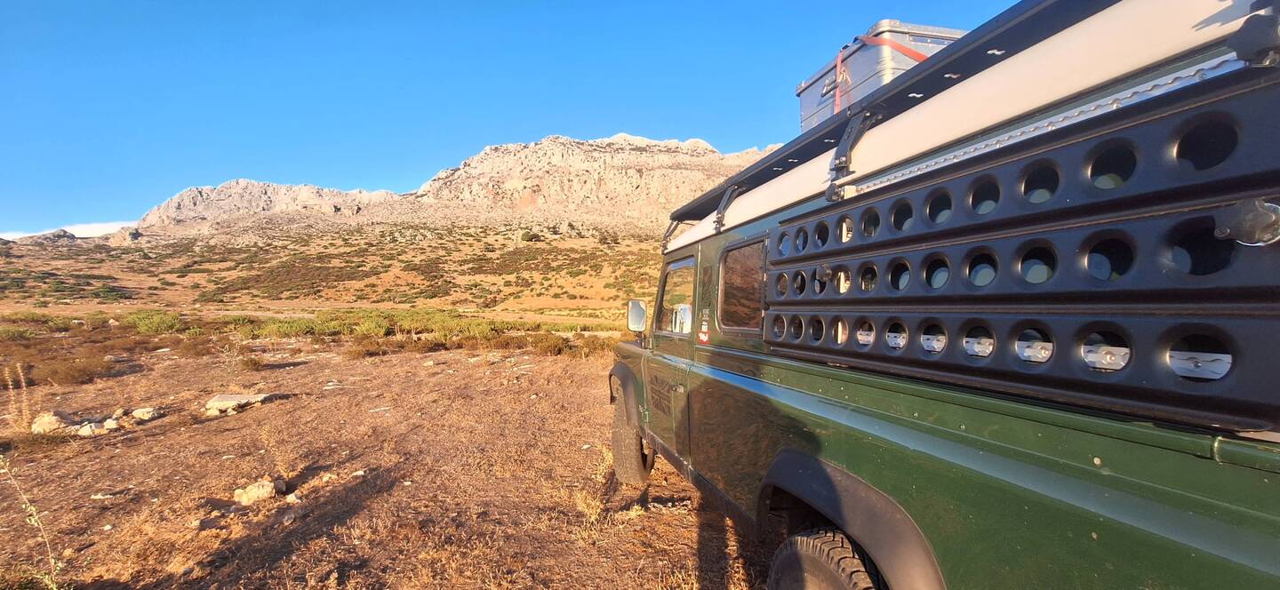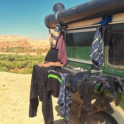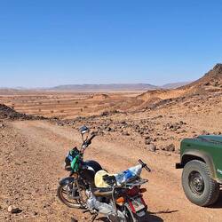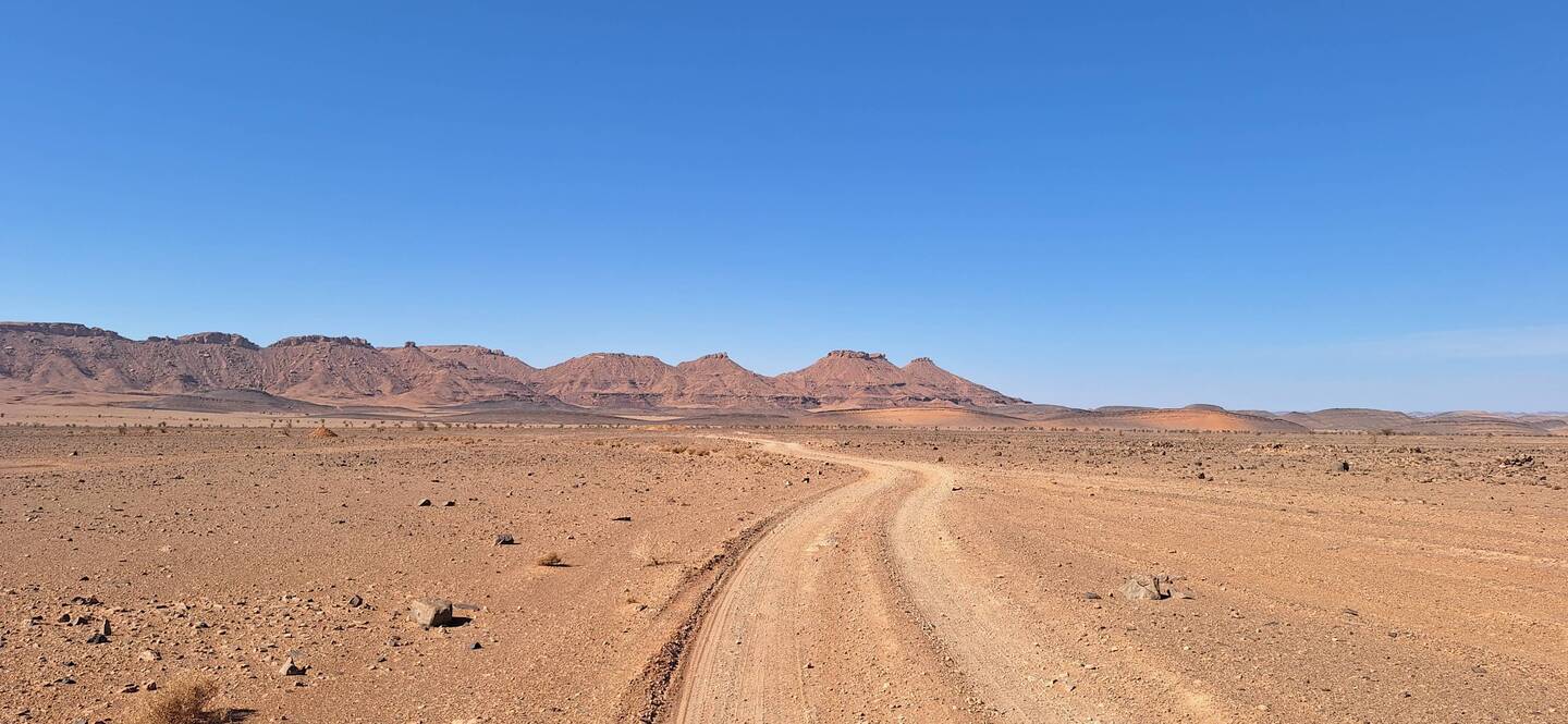 Nachdem ich die Dünen hinter mir gelassen habe, mache ich mich auf den Weg in Richtung Zagora, eine Stadt am Rande der Sahara. Hier warten neue Herausforderungen auf mich, denn wir fahren durch die beeindruckenden Berge und Schluchten der Region. Die Grüne Marie (Defender) beweist ihre Geländetauglichkeit, während wir steile Pisten erklimmen, endlose Steinwüsten Durchquerung und atemberaubende Ausblicke auf die umliegende Landschaft genießen.