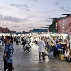 In den Abendstunden erkundeten wir die lebendige Altstadt von Marrakesch. Hier verwandelte sich die Atmosphäre in eine magische Kulisse aus Lichtern, Musik und köstlichen Aromen. Wir probierten traditionelle marokkanische Gerichte wie Tajine und Couscous und ließen uns von den Straßenkünstlern und Musikern verzaubern.