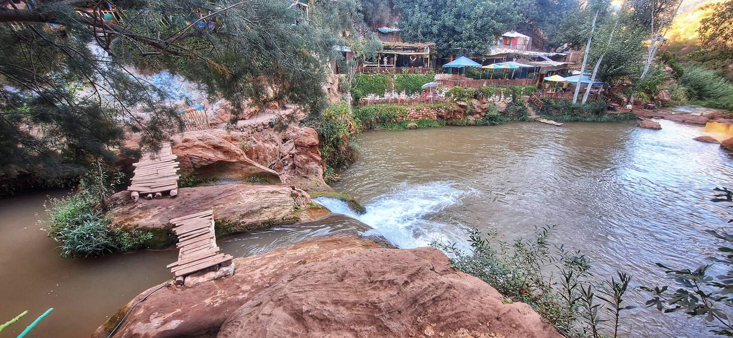 Rund um die Wasserfälle gibt es zahlreiche kleine Restaurants und Cafés, die lokale Spezialitäten wie Tajine oder frischen Minztee anbieten. Es ist der perfekte Ort, um eine Pause einzulegen, die Aussicht zu genießen und dem beruhigenden Rauschen des Wassers zu lauschen. Die Atmosphäre ist entspannt und einladend, und man spürt die Gastfreundschaft der Menschen.