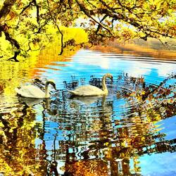 While I was reading by the water I noticed 2 large objects swimming around a wee yacht/boat that was in the loch. My first thought was whoa rich people travel with their own swans. When they wereEn savoir plus