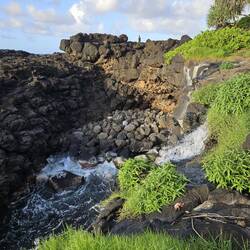 We saw some cool birds and coconuts among the lava rocks at Ka'anapali Beach.