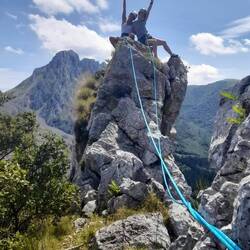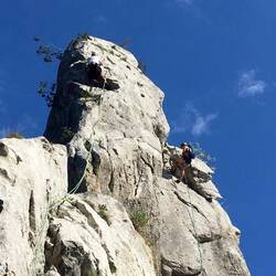 La arista sudeste, al tratarse de una cresta de muy buena roca e infinidad de grietas, puentes de roca, bloques e incluso algún árbol, la tradición local escaladoraLue lisää