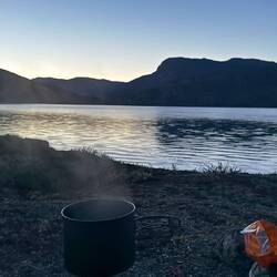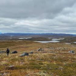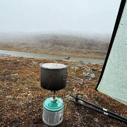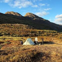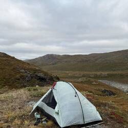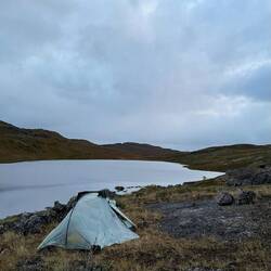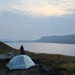 Eine sehr ruhige Nacht liegt hinter uns. Mit 4,5 Grad nicht grade warm aber weit weg von kalt. Es herrscht Stille. Kein Wind oder andere Geräusche sind zu hören. Um 06:00 Uhr trabt ein Rentier auf der anderen Seite des kleinen Sees vorbei und beobachtet mich beim Pinkeln. Wirklich kalt hier draußen! Schnell zurück in den Schlafsack. ⛺️