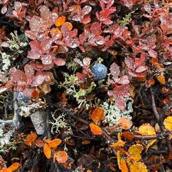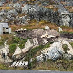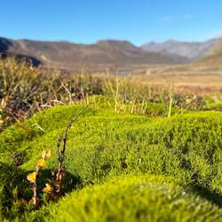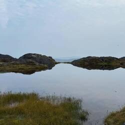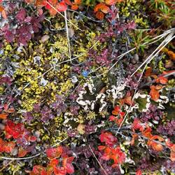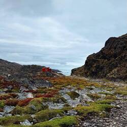 Die Halbinsel besteht aus Stein und Flechten. Wenige Grasbüschel, Sträucher und Moose haben es geschafft auf Dauer hier im Wechsel der Gezeiten zu bestehen. Irgendwie ist es eine karge Landschaft. Andererseits leuchtet der Boden ins verschieden Rot-Tönen.
