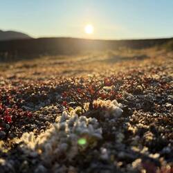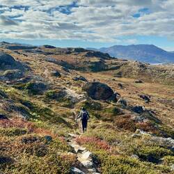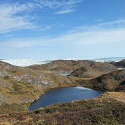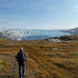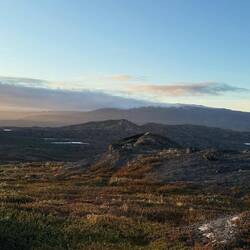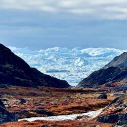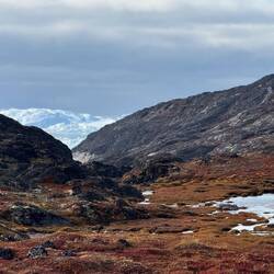 Auf unserem Weg zum Icecap profitieren wir von tollen Blicken rechts wie links auf das riesige Eisdach Grönlands. Immer wieder stehen Rentier Männer oder Mädels am Straßenrand. Große Raben kreisen... Schneeammer fliegen tief über dem Grund.