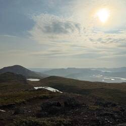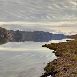 In den ersten Stunden des Tages folgen wir weiter der Ridge entlang des über 10 Kilometer langen Sees Aajuitsup Tasia mit einem spektakulären Blick Richtung Osten. Allmählich zeigt sich der Russell Glacier und Teile des Icecaps.