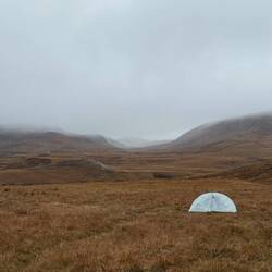 In der Nacht regnet es. Wolkenniesel wechselt sich mit Regen ab. Bei nur 2 Grad haben wir wiedermal viel Kondensation im Zelt.