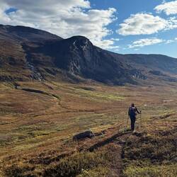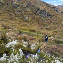 Wir sind so begeistert von dieser Landschaft, dass wir wenig reden. Wir genießen diesen Abschnitt sehr! Ja, es ist auch etwas Vorsicht geboten. Hier rutschen wir schnell aus und auch am vorletzten Tag möchten wir nicht in das eisige Wasser eines Sees oder Flusslaufes fallen.