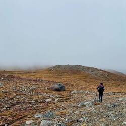 5 Uhr. Ich muss raus. Plastiktüte über die Socken und rein in die nassen kalten Schuhe. Es ist schon sehr hell. Hinter der Zeltwand wartet der Nebel - oder besser die Wolke. Keine 8 Meter Sicht. ☁️ Wo uns gestern unser Blick in die eine Richtung 10 KM über das Land getragen hat und in die andere Richtung die letzten Stunden unseres Weges zeigte, ist alles weiß vor meinem Auge.