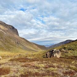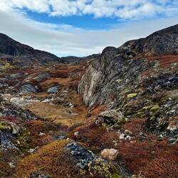 Jetzt, Anfang September, können wir gut erahnen, dass in wenigen Tagen oder Wochen hier alles voller Eis und Schnee ist. Die Temperaturen sind nicht tiefer, als auf unserem Weg Richtung Sisimuit, aber es fühlt sich kälter an. Der Wind ist kalt, nicht unangenehm aber hüllt uns in Kälte.