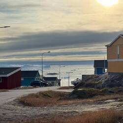 Im hochmodernen und gerade mal 3 Jahren alten Icefjord-Center trinken wir einen Kaffee und wärmen uns nochmal auf. Mit gut 3 Grad ist es hier schon etwas kälter als in Sisimiut. Es fühlt sich zumindest mal kälter an. Ganz allmählich verziehen sich die Wolken, die Sonne kommt zum Vorschein und so machen uns auf den Weg Richtung Küste.
