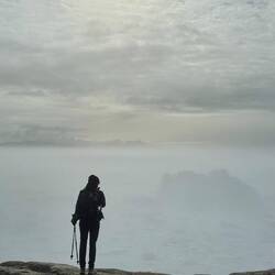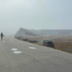 Draußen ist es neblig. Die gesamte Halbinsel liegt in den Wolken. Es nieselt.