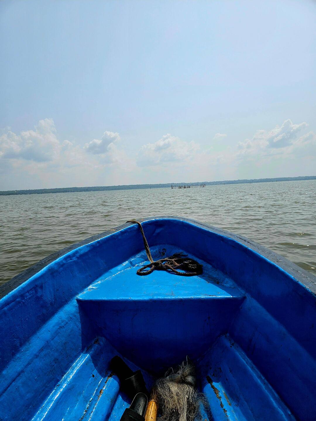 Mitten auf dem See ging leider der Motor kaputt. In der prallen Mittagssonne wurden wir dann mit einem Stock 1,5 km bis zum Ufer befördert. Hat für ordentlich Sonnenbrand gesorgt...