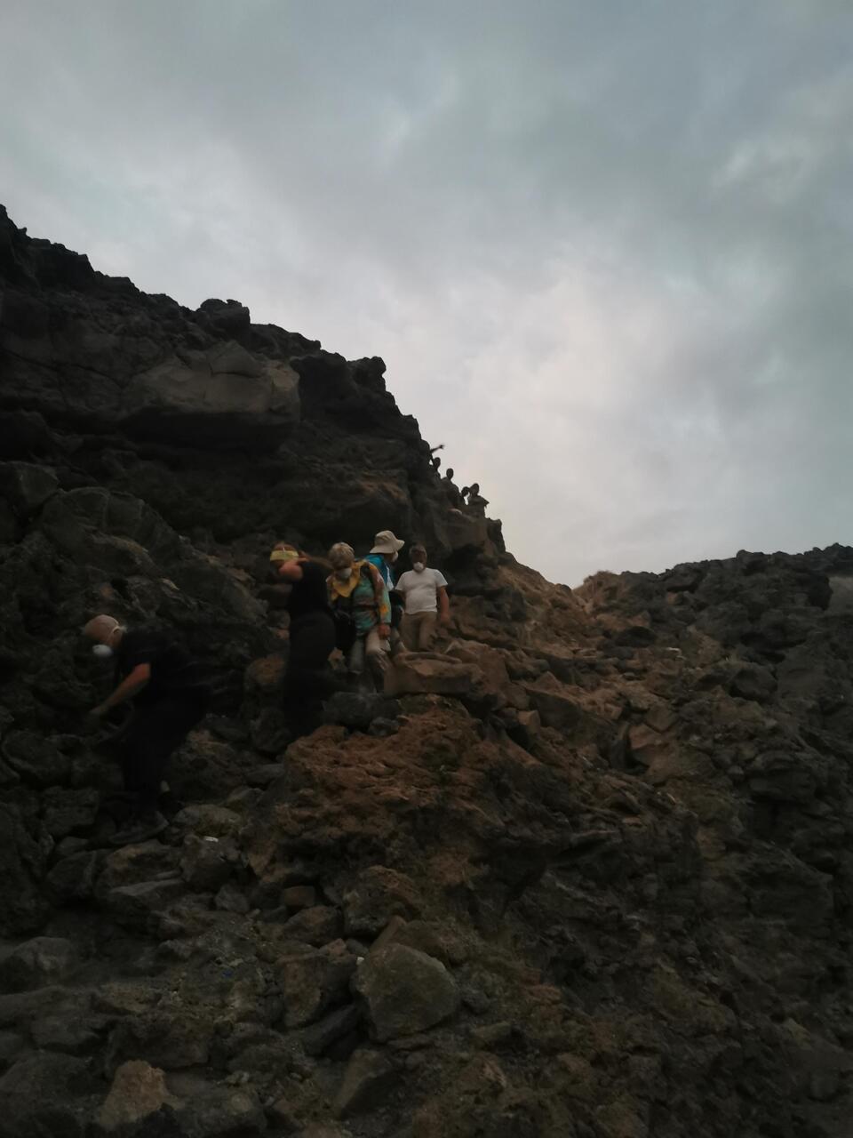 Der amerikanische Botschafter war - mit reichlich Militärbegleitung - auch oben. Helle Hose, schwarzer Rucksack.