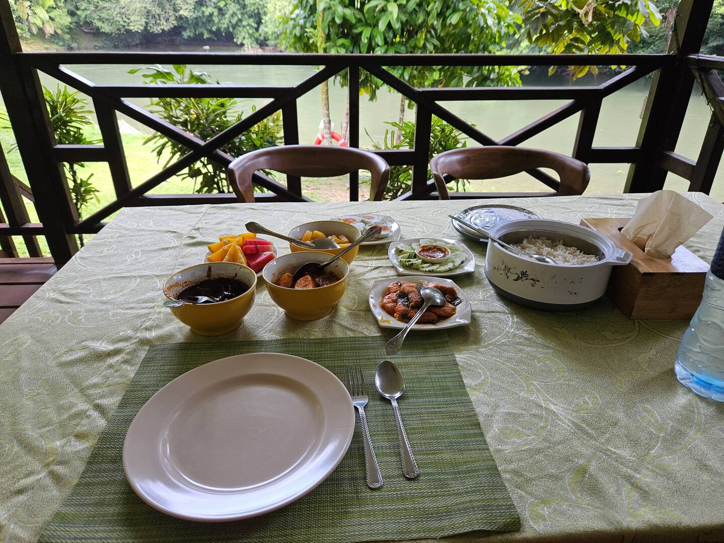 Früh morgens ging es in die Exklave Temburong, die hauptsächlich aus Urwald besteht. Vor meiner Flusstour zu 2 kleinen Wasserfällen gab es Frühstück in einer Lodge.
