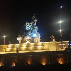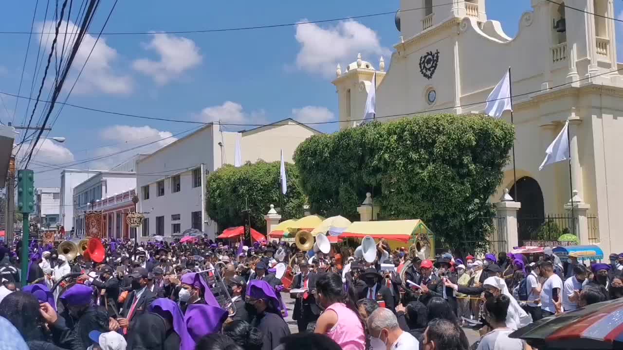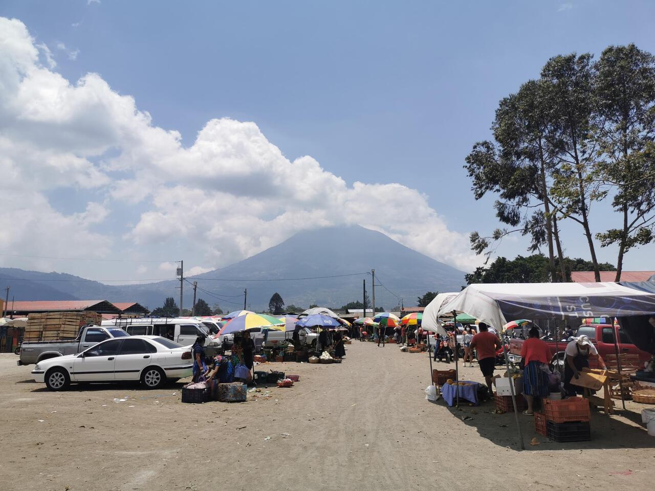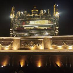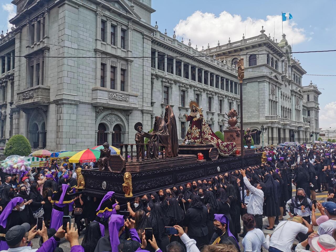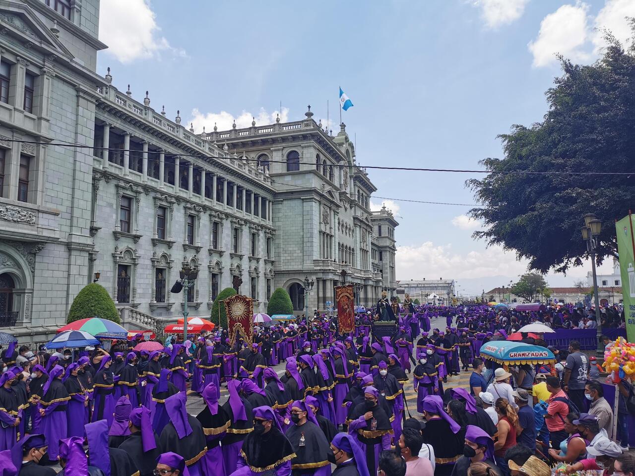 Für die zweite Prozession am Abend wurde die Hauptstraße gesperrt. Zahlreiche Freiwillige legen "Teppiche" aus bunten Sägespänen aus, über die die Prozession dann läuft.