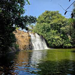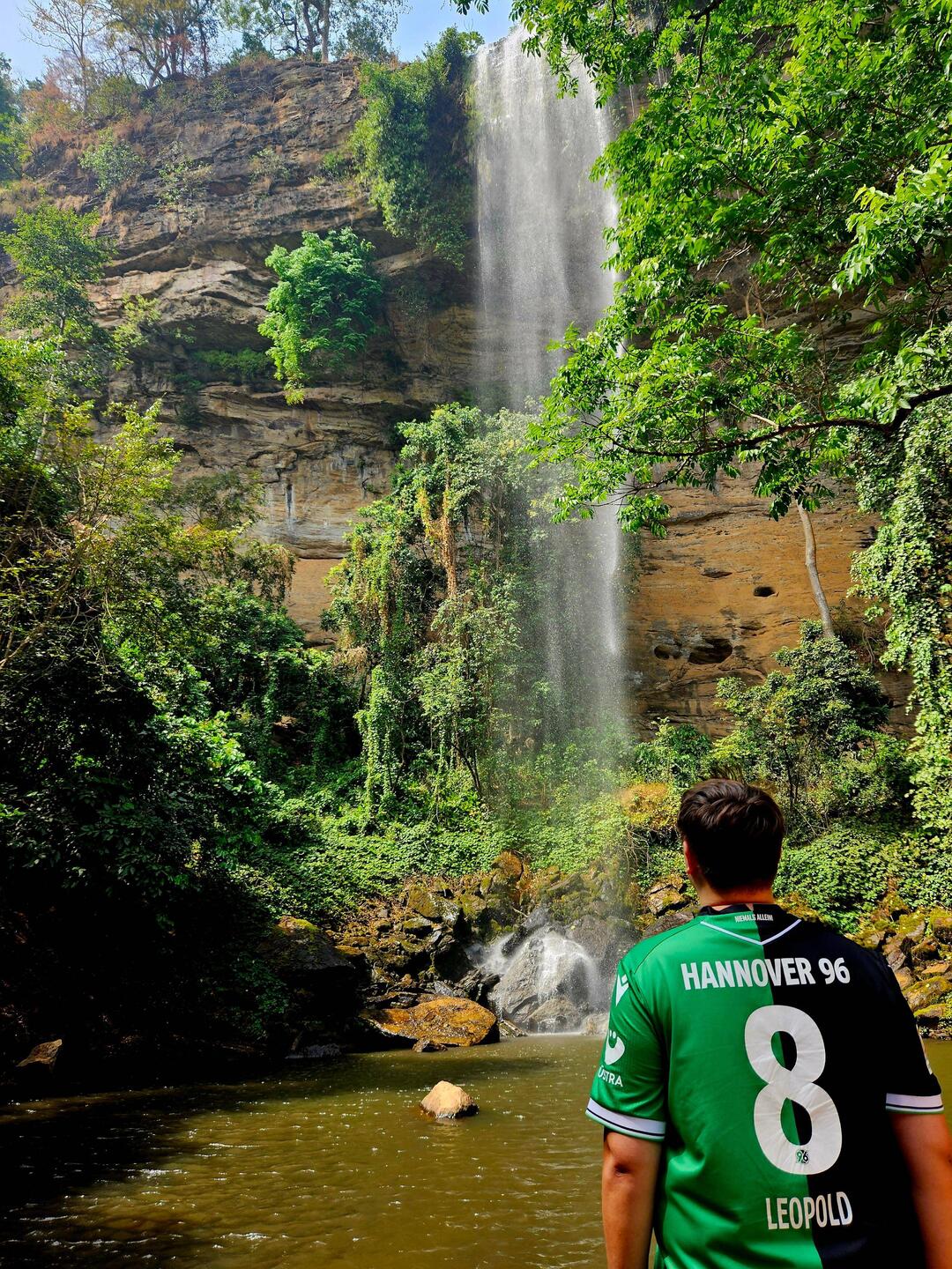 Der Name bedeutet "Brautschleier". Ca. 80 Meter hoch. Derzeit ist Trockenzeit, deshalb führt er recht wenig Wasser.