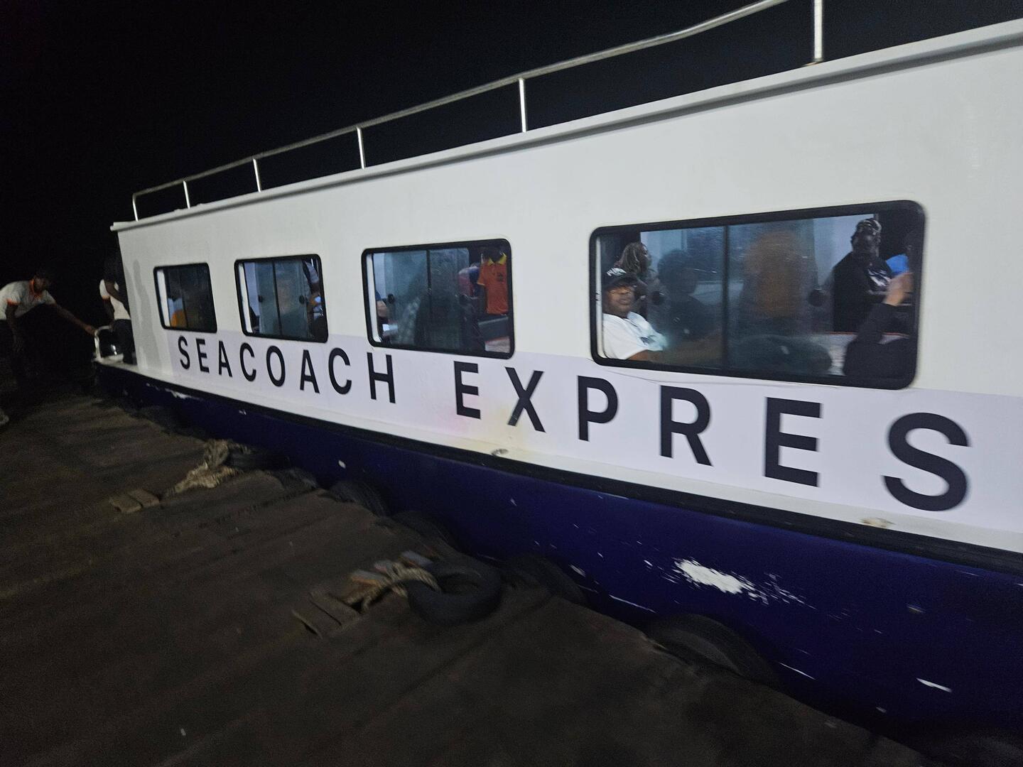 Der Flughafen von Freetown ist so schlecht gelegen, dass man erst 40 Minuten mit dem Schiff und dann nochmal 20 Minuten mit dem Bus fahren muss. Anfahrt mit dem Auto ist möglich, dauert aber 3 bis 4Leia mais