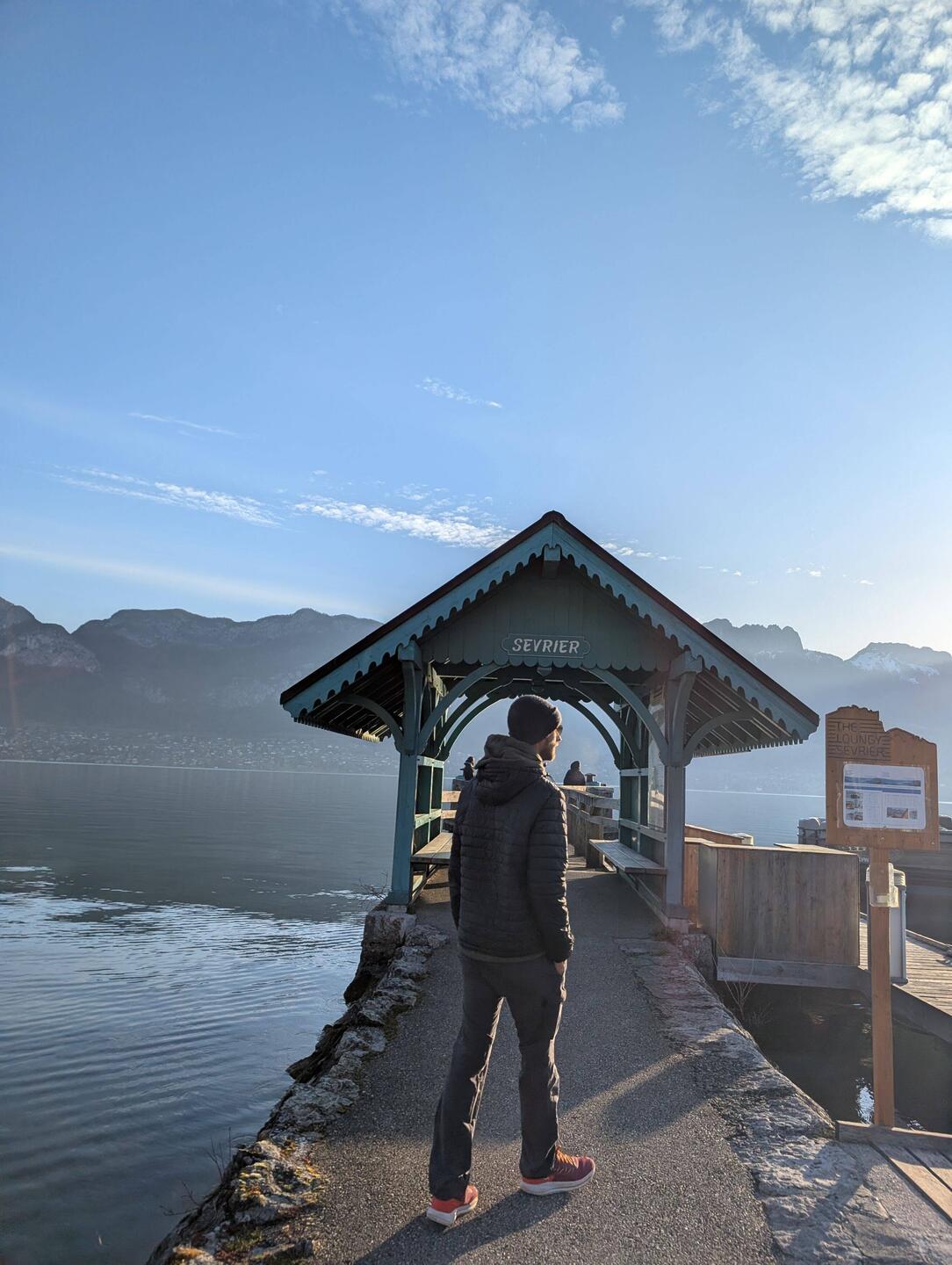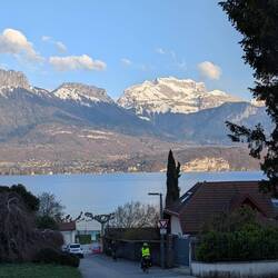 Ce matin, vous suivez Bernie dans sa balade matinale au lac pour voir les rayons du soleil levant percer les contreforts de la Tournette. C'est vrai que c'est beau !