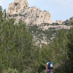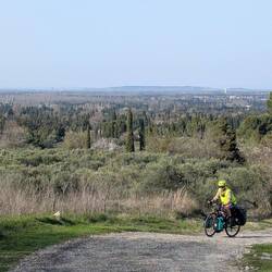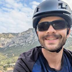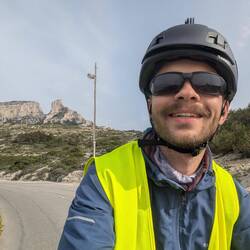 Le paysage change, c'est plus sauvage. Le sommet et le début de la descente vous offrent un beau panorama collines de guarrigue environnantes et les falaises environnantes. Vous vous arrêtez dans une boulangerie à Saint Savournin avec une jolie vue sur des falaises et fond sonore de militantisme politique pour les municipales. Requinqué.es, les kilomètres s'enchaînent malgré une descente en GRAVEL BIKE, magnifique bien qu'un peu technique. S'ensuit une longue descente de 7 km avec une piste cyclable médiocre. Heureusement que le flux de voiture vous a quand même permis de profiter de la planitude de l'impeccable bitume !