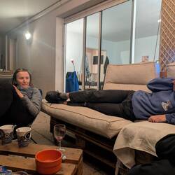 C'est au soleil couchant que vous prenez la route du retour. La chaussée est autrement plus intimidante et les nerfs sont mis à rude épreuve par les marseillais·es. C'est lessivé·es par la ville que vous finissez par arriver dans votre nid douillet, après un échec de quête de lunettes pour Ben. Ariane vous attendait pour vous faire un dernier coucou avant 2027. Peu à peu, votre motivation de ressortir fond comme neige au soleil, surtout que Roxane vous prépare un super plat de lentilles-saucisses végétariennes ! Puis c'est au tour d'Alexandre de venir vous dire au revoir autour d'une partie de Décrypto.