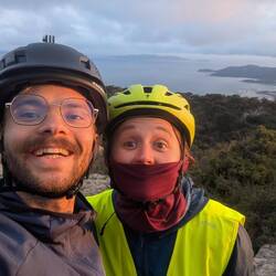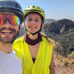 Après toutes ces émotions, la fatigue se fait ressentir, tout comme le froid qui vous pousse à repartir. Vous réenfourchez donc vos bécanes direction Agay, où on va passer la nuit chez des ami·es des parents de Ben. La route vous permet d'admirer le beau massif de l'Esterel, qui rayonne sous cette lumière de coucher de soleil. Vous grimpez encore un peu avant d'arriver chez Pascal et Sylvie, où Pascal vous accueille avec une douche (oh oui merci!), des bières et des Belins ! Ben va nous cuisiner un bon chili sin carne avec les fanes de mes copines qu'Alice transporte depuis 3 jours dans l'attente d'avoir une cuisine. Merci à elleux ❤️Read more