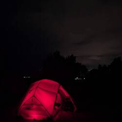 Vous réussissez néanmoins à trouver votre chemin dans l'obscurité jusqu'à un endroit plat dominant la mer et le village de Rayol Canadel où vous montez le camp. On est encore à 250m d'altitude, j'espère que la nuit ne sera pas trop fraîche !Read more
