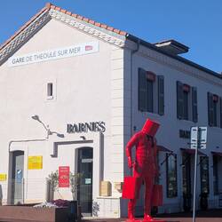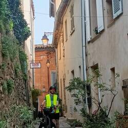 Après avoir dévalisé la réserve de pain de l'hôtelier (qui vous a bien jugé·es), vos chemins se séparent : Ben, tu retournes chercher ta carte vitale chez Lunettes pour tous (encore une fois !) pendant que toi, Alice, tu fais un peu de dénivelé pour te dégoter une vue mer. Vous vous retrouvez vite et faites une petite pause réglage de vélo au joli village du Pradet. Vous achetez aussi une botte de copines au marché, qu'Alice tu fixes sur ton porte bagage.