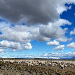 We wake to grey in the middle of what looks like an Argentinian version of the Yorkshire Moors. The ripio is truly awful, the worst yet - rough bumpy and sticky mud that blocks our wheels and is like riding in treacle. We have an unexpected obligatory spectacle of the rounding up of 1000s of sheep by Gauchos (which blocks our route for some time).