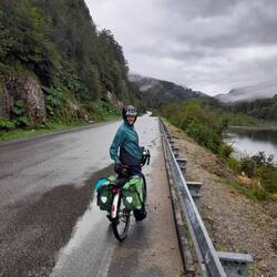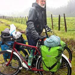 With good humour and no complaints. Appreciating our new dry panniers (emergency purchase after I tested the old panniers 2 days before we left). Thankful for dry bus shelters. Solid day of rain as weRead more