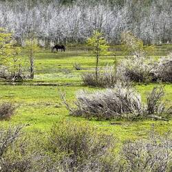 This morning we had no water supposedly because it had frozen?? At 1050 m altitude, cold it was and windy, but beautiful. Another day of grand scenery, tender colors of spring and cattle company.Read more