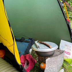 The day starts wet and grey and drizzly. And it ends even wetter. We start dry and end up wet. We are really remote and days from shops or a tap or a bed.