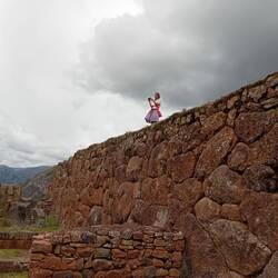 We have one full day for exploration. As we get to the site, a Quechua lady from the next village, Vianne, proposes to act as a guide for the terraces, the temple on top, the condor and the water fountains.