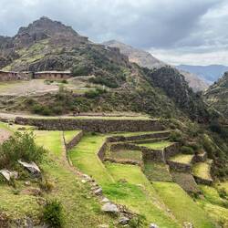 We are impressed in general by the widespread use made by the Incas/Quechuas of the mountain bedrock, both as material for impressive in-situ carvings, and as the backbone of constructions. The approach produces strong foundations and terraces - a formidable task in this challenging environment. We saw a similar terrace construction when visiting roman temples such as Bergama in Turkey.