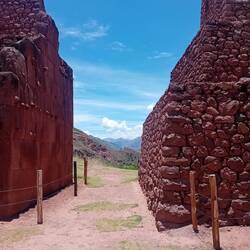 On the sunny valley side, the temple from late 15th century was disfigured by Spaniards, around 1560 (they demolished in particular four sculpted pumas). The traditional symbols of Condor (air, spirit) Puma (earth, human power) and Snake(water, death), which were already used in the second century, are still present in Inca times.