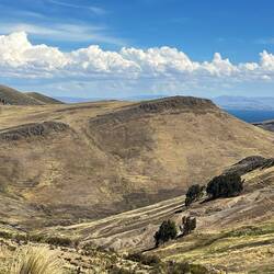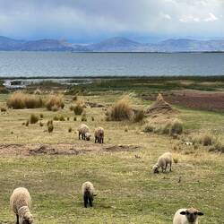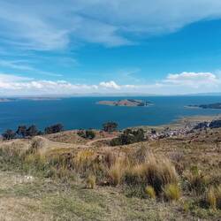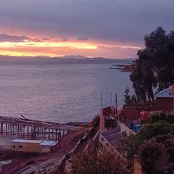 We cross the very quiet (pedestrian only?) border quickly and easily and are soon on our way to Copacabaña . Its a very touristy but pretty lakeside town - a little bit of a shock after being out in the ´wilds’. Appart from the new currency and prices its hard to see much of a difference from Peru. We take advantage of the tourism and treat ourselves to a coffee/ tea and decent cake and Alain has a much needed ´prune´. In the evening we head up the hill behind town to watch the sunset.Read more
