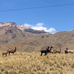 The day starts bright and sunny. We leave lake Tuni behind and head up past old mining villages and ruins and past more llamas. The view of Huayna Potosi is mesmerizing and the steep sided valley we are climbing beside is spectacular.