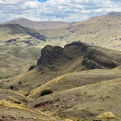 On our right appears a steep hill, then several, covered with Puya raimondii, "the queen of the Andes". We are relieved that they exist elsewhere than in the Huascaran natural park, and notice that there seems to be a correlation with the absence of sheep and cows.